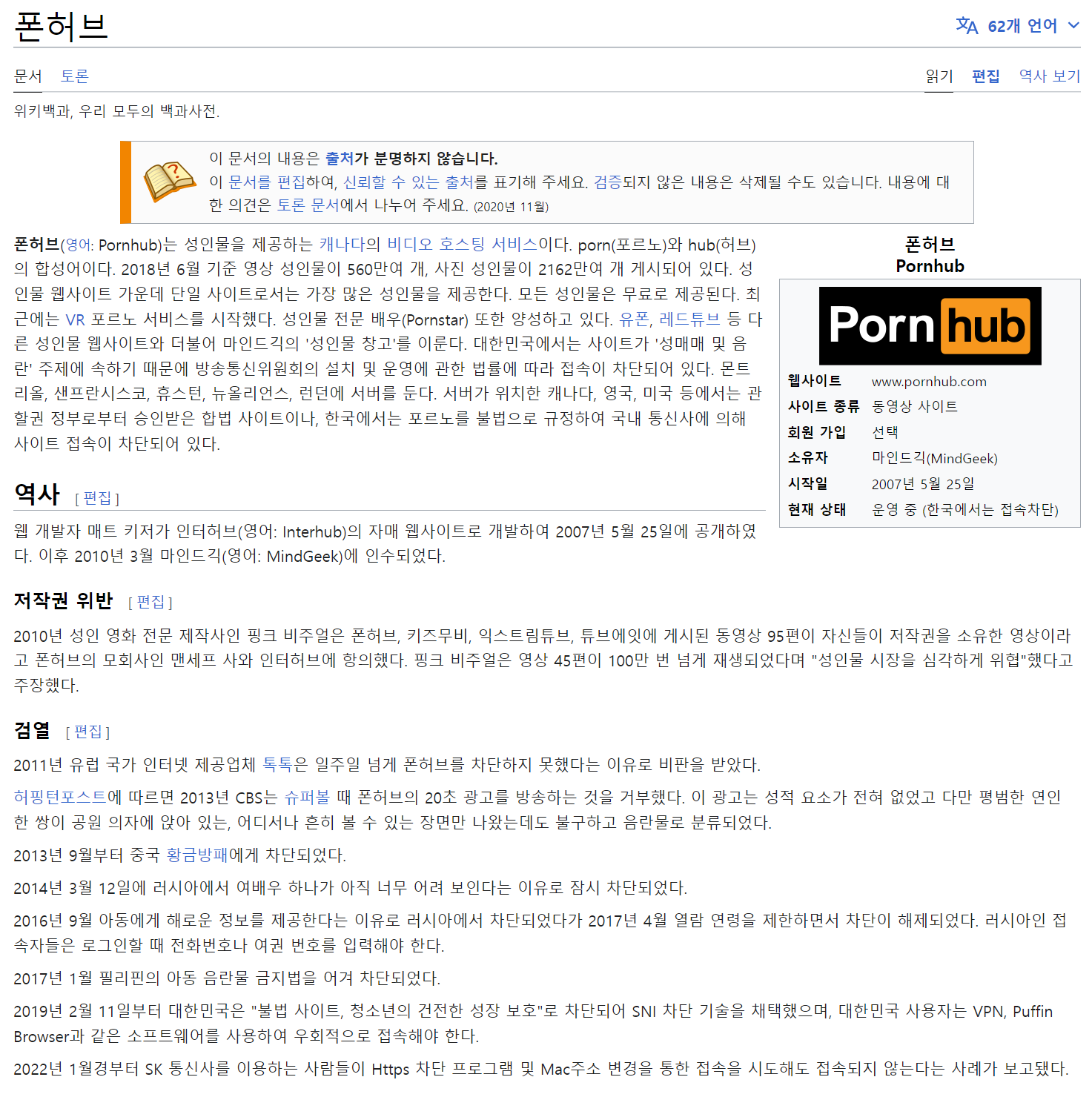 2018년 기준 2162만개의 성인동영상이 업로드 되어 있다고 하네요 ㄷㄷㄷ