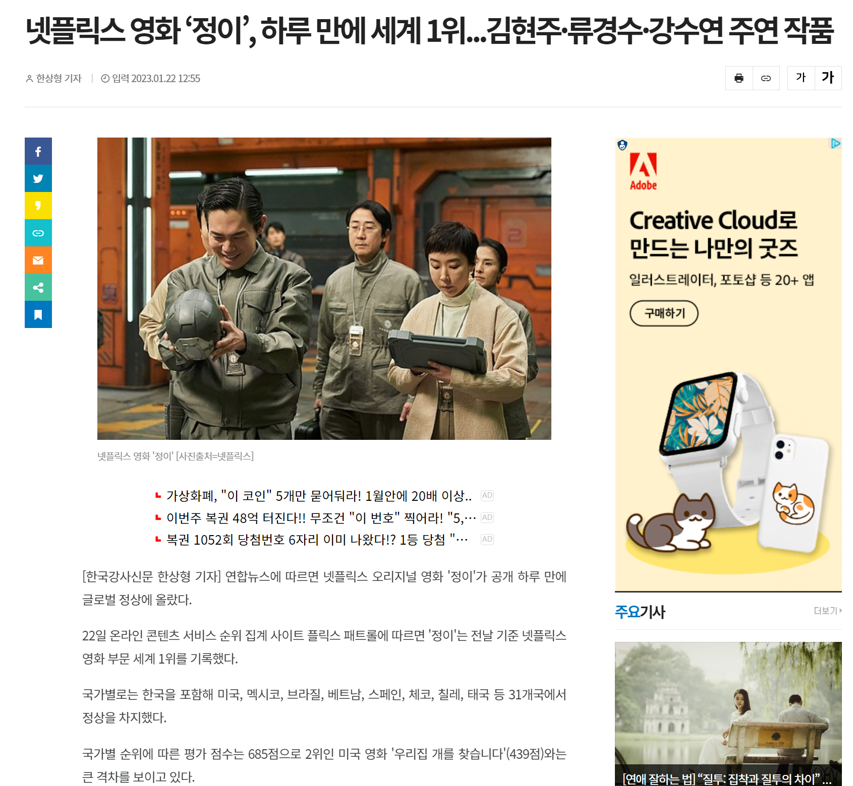 믿고보는 연상호 감독, 많은 작품에서 활약을 보였던 류경수 배우, 그리고 고인이 된 강수연 배우님 ㅜㅜ, 아름답게 멋이 들어가는 김현주 배우님까지 이제 국내에서도 이정도급의 CG를 보는것은 자연스러운 일입니다 ㅎㅎㅎ