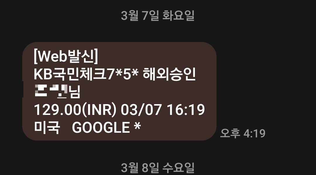 정상적으로 접속지역이 해외(터키)로 되어있다면 결제내역에 한화(원)이 아니라 다른국적의 통화로 표기가 됩니다.